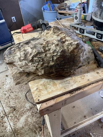 I have a very large sassafras burl I procured earlier this past summer. I want to slice it about 4” above the flat surface and parallel to it. My bandsaw is about 2” too short to handle the 16”+\-width. I don’t suppose anyone has a bandsaw that can handle this large burl?