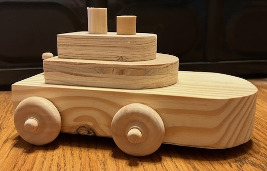 Our Toys of the Month for August are the Yellow Submarine and the Gravity Car. The plans for the Yellow Submarine were submitted by Lee Van Duyn and require work at a band saw to complete. Meanwhile, the Gravity Car was submitted by Jeff McQuitty, sharing the design for a toy he crafted for sale at the Indiana State Fair.